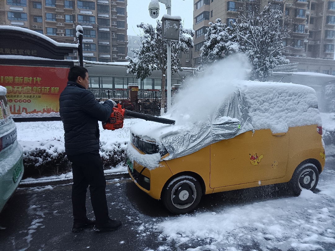 早在12月10日市氣象部門發(fā)布寒潮與降雪預(yù)警時(shí),長(zhǎng)田物業(yè)黨支部便未雨綢繆,第一時(shí)間啟動(dòng)應(yīng)急預(yù)備機(jī)制,明確人員分工,細(xì)化作業(yè)流程;備足融雪劑、鐵鍬、雪鏟、推雪板、鼓風(fēng)機(jī)等清雪物資,確?!氨磩?dòng)、糧先行”。針對(duì)園區(qū)居民數(shù)量多、覆蓋面積廣的特點(diǎn),物業(yè)還提前開(kāi)展員工專項(xiàng)培訓(xùn)。