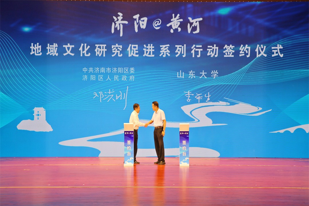 隨后,舉行山東大學(xué)儒學(xué)與黃河文化研學(xué)基地、濟南市濟陽地域歷史文化研究促進會、山東濟北手造文化發(fā)展有限公司揭牌儀式,并簽署戰(zhàn)略合作框架協(xié)議。