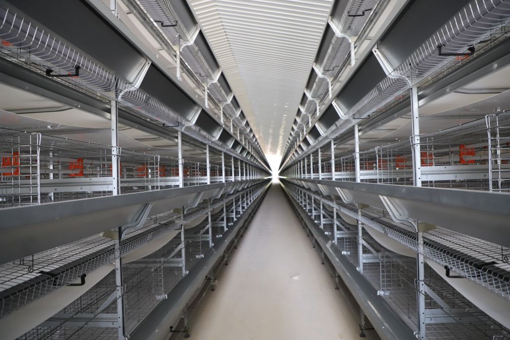 走進雞舍內(nèi),環(huán)境明亮整潔,與傳統(tǒng)蛋雞養(yǎng)殖不同,養(yǎng)殖場采用全自動化養(yǎng)殖系統(tǒng)設(shè)備進行飼養(yǎng)生產(chǎn),五列、雙面、四層籠架,不僅可以實現(xiàn)自動飲水、自動喂料、自動控溫、自動通風(fēng)、自動收集雞蛋、自動清糞,還引用了高科技的智能機器人管理,降低了勞務(wù)成本,極大地提高了生產(chǎn)效率。