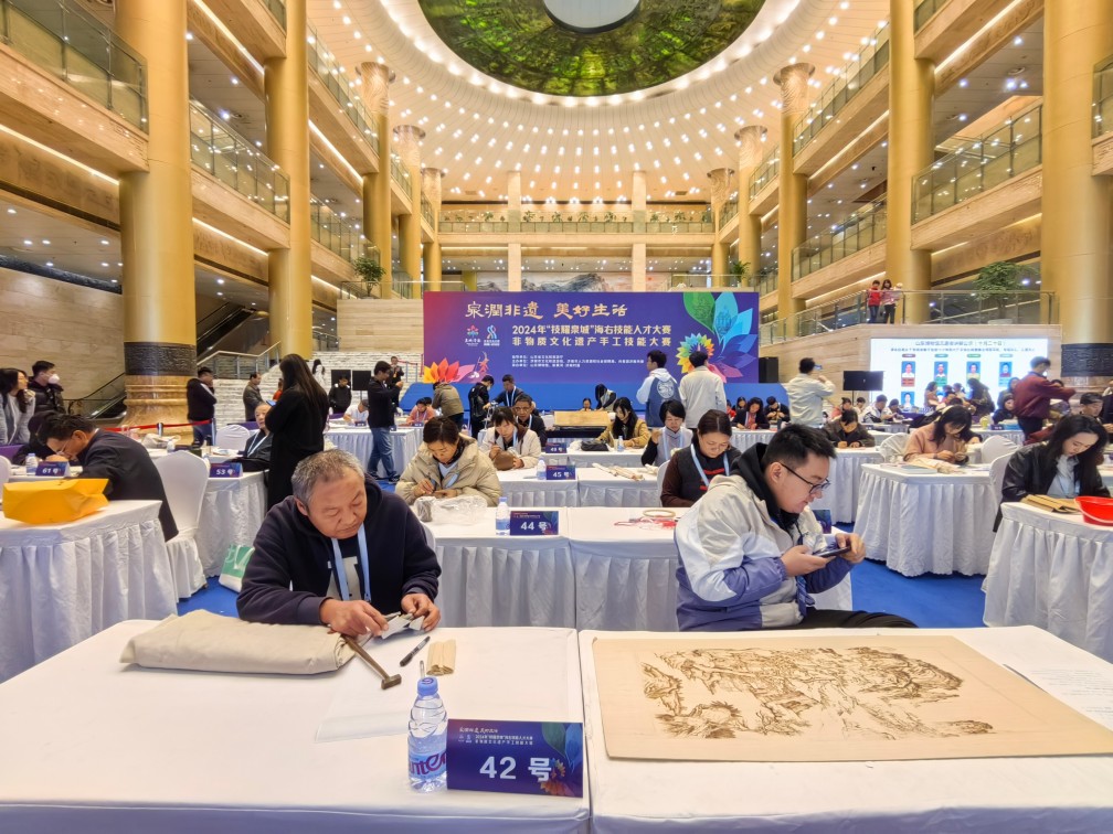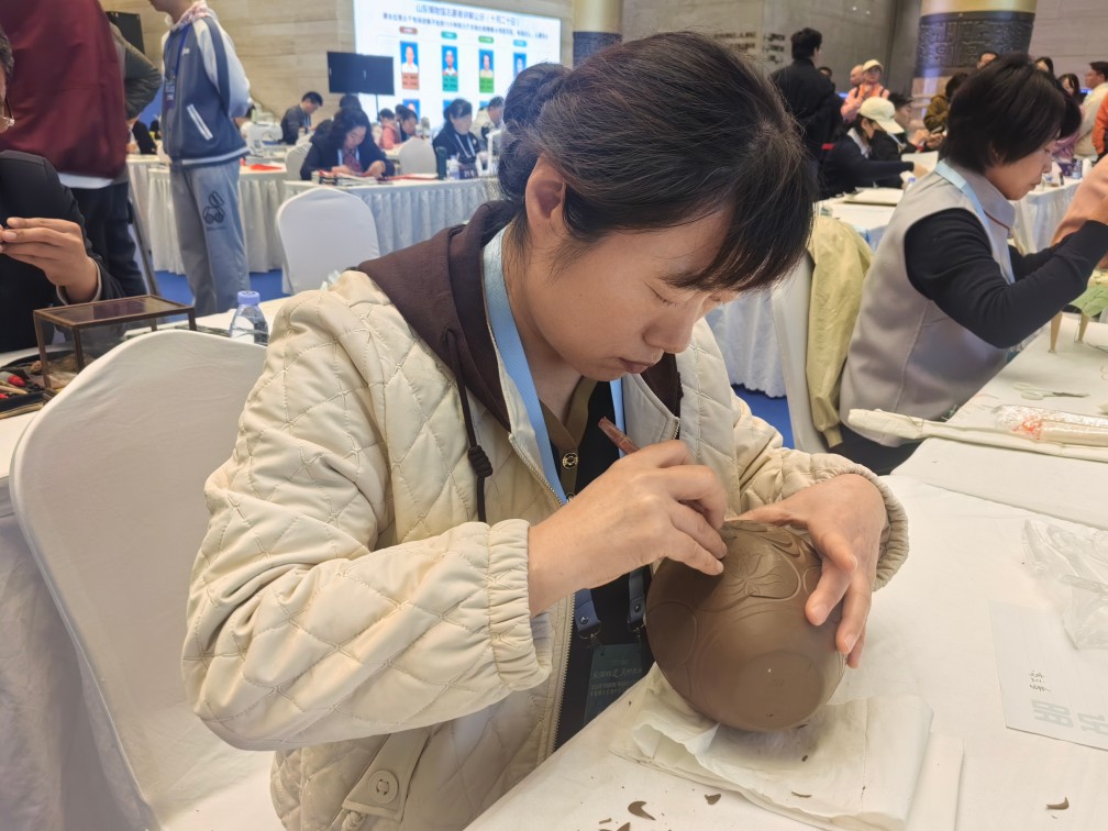 2024年10月19日—20日,由山東省文化和旅游廳指導(dǎo),濟(jì)南市文化和旅游局、濟(jì)南市人力資源和社會保障局、共青團(tuán)濟(jì)南市委主辦,山東博物館、新黃河 ? 濟(jì)南時報(bào)承辦,第八屆中國非物質(zhì)文化遺產(chǎn)博覽會2024年“技耀泉城”海右技能人才大賽——非物質(zhì)文化遺產(chǎn)手工技能大賽在山東博物館成功舉辦。20日,龍格黑陶工作人員高立香、王建參與賽事。