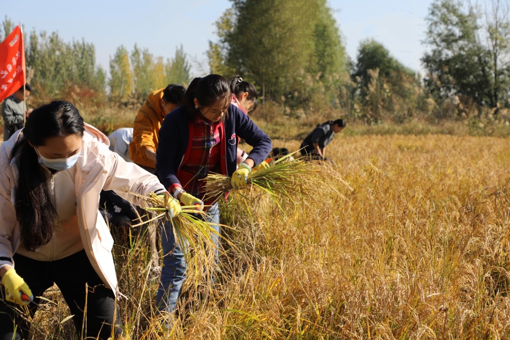 隨后,大家轉戰(zhàn)稻田,感悟“金秋”豐碩的“勞動精神”,在稻谷飄香中摘取“為民”的碩果。割水稻是一項技術活,需要彎腰、揮刀、捆扎,每一個步驟都不能馬虎。盡管腰酸背痛,但大家依然咬牙堅持,沒有一人退縮。在勞動中,大家深刻體會到了農民的不易,也更加堅定了為鄉(xiāng)村振興貢獻力量的決心。