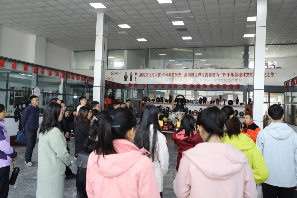 在龍格黑陶藝術研究院的展館里,學員們欣賞了各種精美的黑陶作品,了解了黑陶的制作工藝和歷史背景。