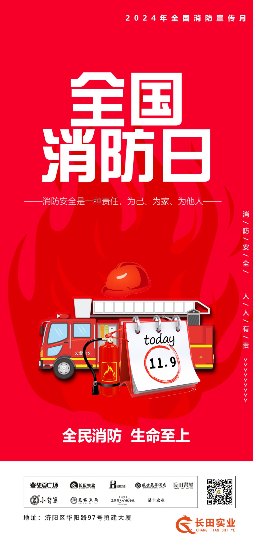 今年11月9日是第33個(gè)全國(guó)消防日,國(guó)務(wù)院安委會(huì)辦公室定于11月份在全國(guó)開展消防宣傳月活動(dòng),活動(dòng)主題為全民消防、生命至上。
