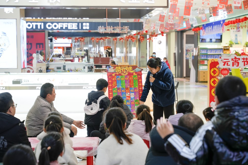 華百?gòu)V場(chǎng)內(nèi),工作人員們精心準(zhǔn)備了各類燈謎,內(nèi)容涵蓋了詩(shī)詞歌賦、歷史典故、生活常識(shí)各個(gè)領(lǐng)域,既有趣味性又具知識(shí)性。每一次謎底的揭曉,都是智慧碰撞出的火花,讓大家在歡樂中感受傳統(tǒng)文化的博大精深。每當(dāng)工作人員念完“燈謎”后,孩子們便紛紛舉手回答,現(xiàn)場(chǎng)氛圍歡快熱烈,工作人員為猜對(duì)的家庭發(fā)放精美禮品,更加激發(fā)了大家的參與熱情。通過(guò)沉浸式文化體驗(yàn),在傳統(tǒng)民俗中傳遞溫暖親情,增強(qiáng)民族文化自信。
