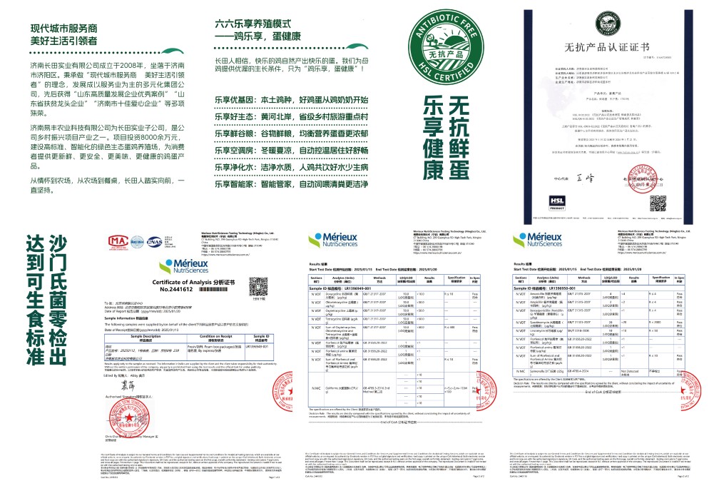 區(qū)別于傳統(tǒng)養(yǎng)殖模式,長田樂享創(chuàng)新構(gòu)建“六六樂享養(yǎng)殖體系”,以“優(yōu)基因、好生態(tài)、鮮谷糧、空調(diào)房、凈化水、智能家”打造高標準養(yǎng)殖體系。產(chǎn)品全程不添加激素和抗生素,配備蛋品清洗分級設(shè)備,嚴格把控品質(zhì),確保產(chǎn)品在消費者手中的新鮮度和安全性。長田樂享超鮮蛋獲得無抗產(chǎn)品認證。