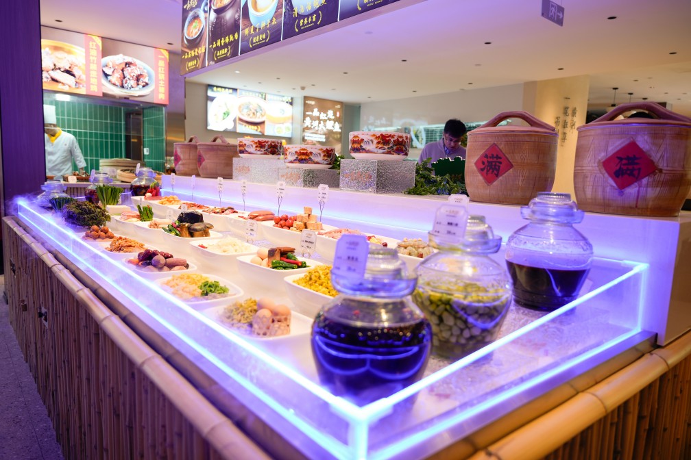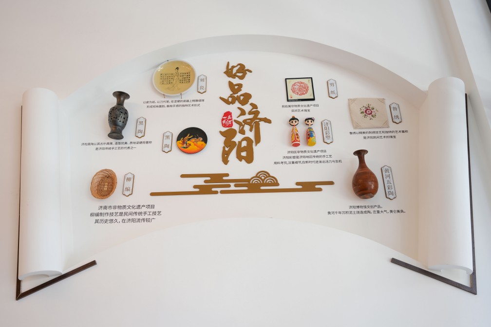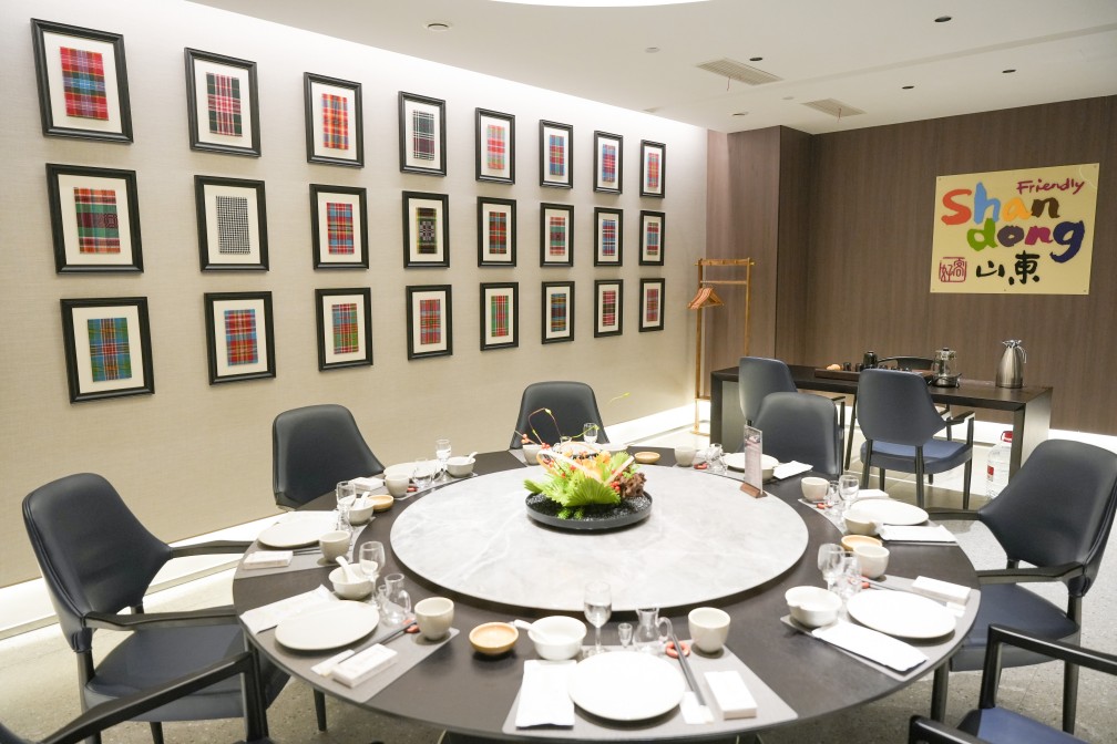 獨(dú)具匠心之處在于,一品黃河20個(gè)包間以黃河所流經(jīng)的九個(gè)省份和進(jìn)入山東省后所流經(jīng)的九個(gè)市的名稱命名,房間內(nèi)軟裝如掛畫等體現(xiàn)沿黃省份、城市的文化特征,并通過桌卡形式全面呈現(xiàn)文化內(nèi)涵,將黃河文化具象為沉浸式餐飲體驗(yàn)。比如山東廳懸掛的是山東具有代表性的非遺文化代表作--魯錦,魯錦的每一梭都是對自然的敬畏,每一紋都是對生活的期許;黃河源頭青海廳懸掛的是青海省具有代表性的非遺文化代表作熱貢唐卡;四川廳懸掛的是四川具有代表性的非遺文化代表作蜀繡做成的熊貓壁畫;有“天下黃河富寧夏”之說的寧夏廳,懸掛的是寧夏最具代表性的非遺文化產(chǎn)品回民剪紙等等。讓每一餐都成為一場文化之旅。